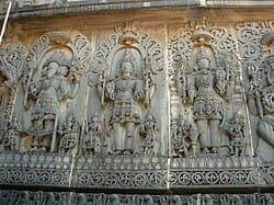 Escultura no templo de Hoysaleswara representando a Trimúrti: Brama, Xiva e Vixnu